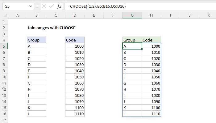 Combine ranges with CHOOSE